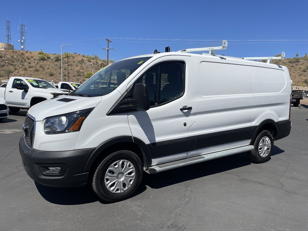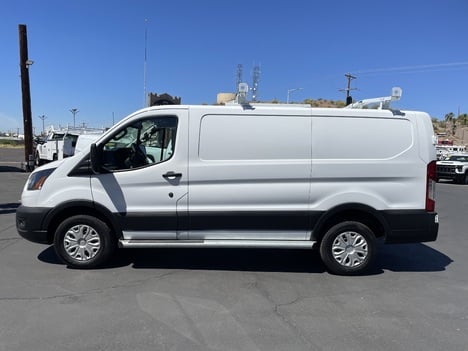 Only 18K miles on this 2024 Ford Transit 250 with the 3.5 V6, 10-speed automatic transmission, power windows, power locks, power mirrors, tilt steering, cruise control, AC, AM/FM stereo with USB input and steering wheel audio controls, Bluetooth, backup camera, cloth interior, step boards, and a full cargo package including partition, shelves and a curbside drop-down ladder rack. This is a one owner van with a clean Carfax that's been thoroughly inspected, serviced and reconditioned. Balance of Factory Warranty applies! Call 877-870-8782 for more information. Business financing is available. Advertised price does not include sales tax, registration costs or dealer doc fee of $399.